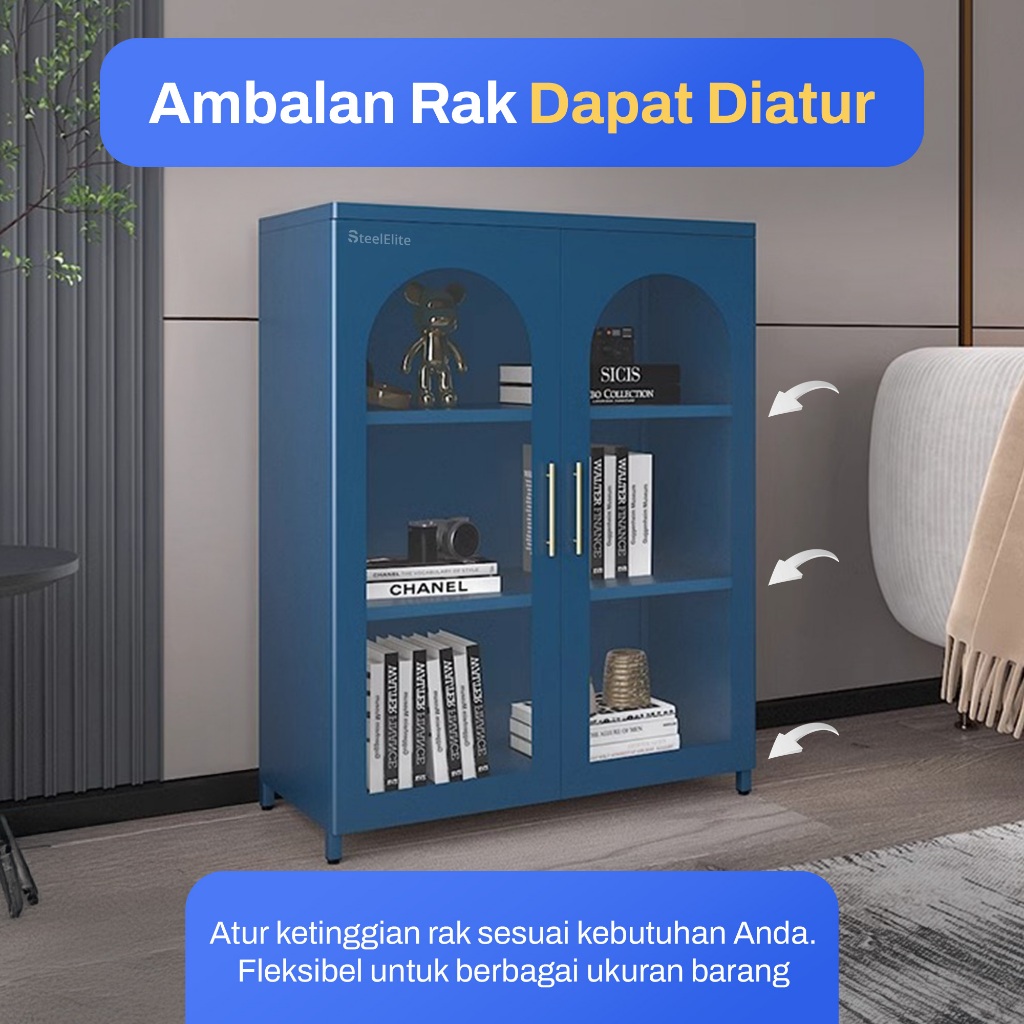 STEEL ELITE LEMARI KACA LEMARI PAJANGAN LEMARI HIAS RUANG TAMU MINIMALIS LEMARI DISPLAY LEMARI BUKU