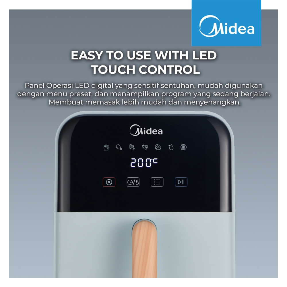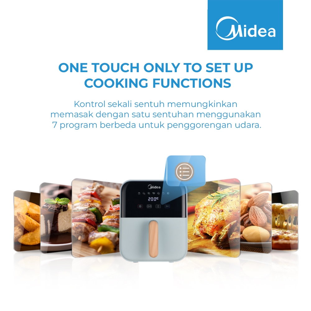 Midea Air Fryer 4L 650W Low Watt MAD40007ADG Penggorengan Tanpa Minyak Digital Touch Blue