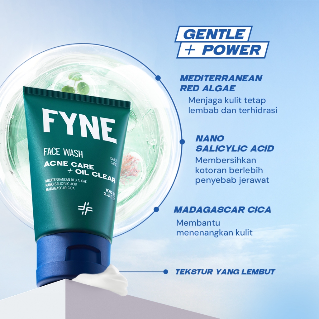 FYNE Pria Acne Care + Oil Clear 100ml Face Wash Gentle - Sabun Cuci Muka Pria Membantu Melawan Jerawat