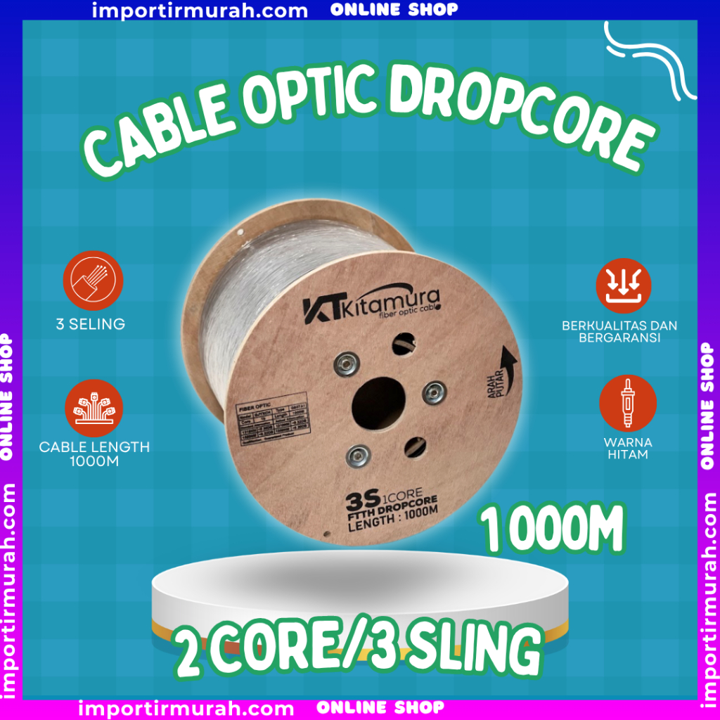 Kabel ftth dropcore fiber optik simplex single mode 1 core Kabel Fiber Optik Kabel FO Dropcore Kitamura 1000 Meter – 1/2/4 Core 3 Seling