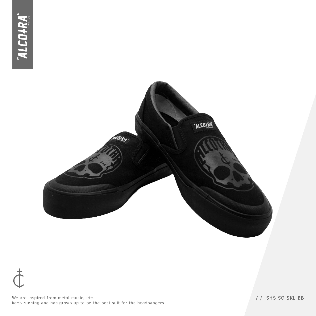 SHS SO SKL BB // SEPATU SLIP ON SKULL ALCOTRA HITAM-HITAM