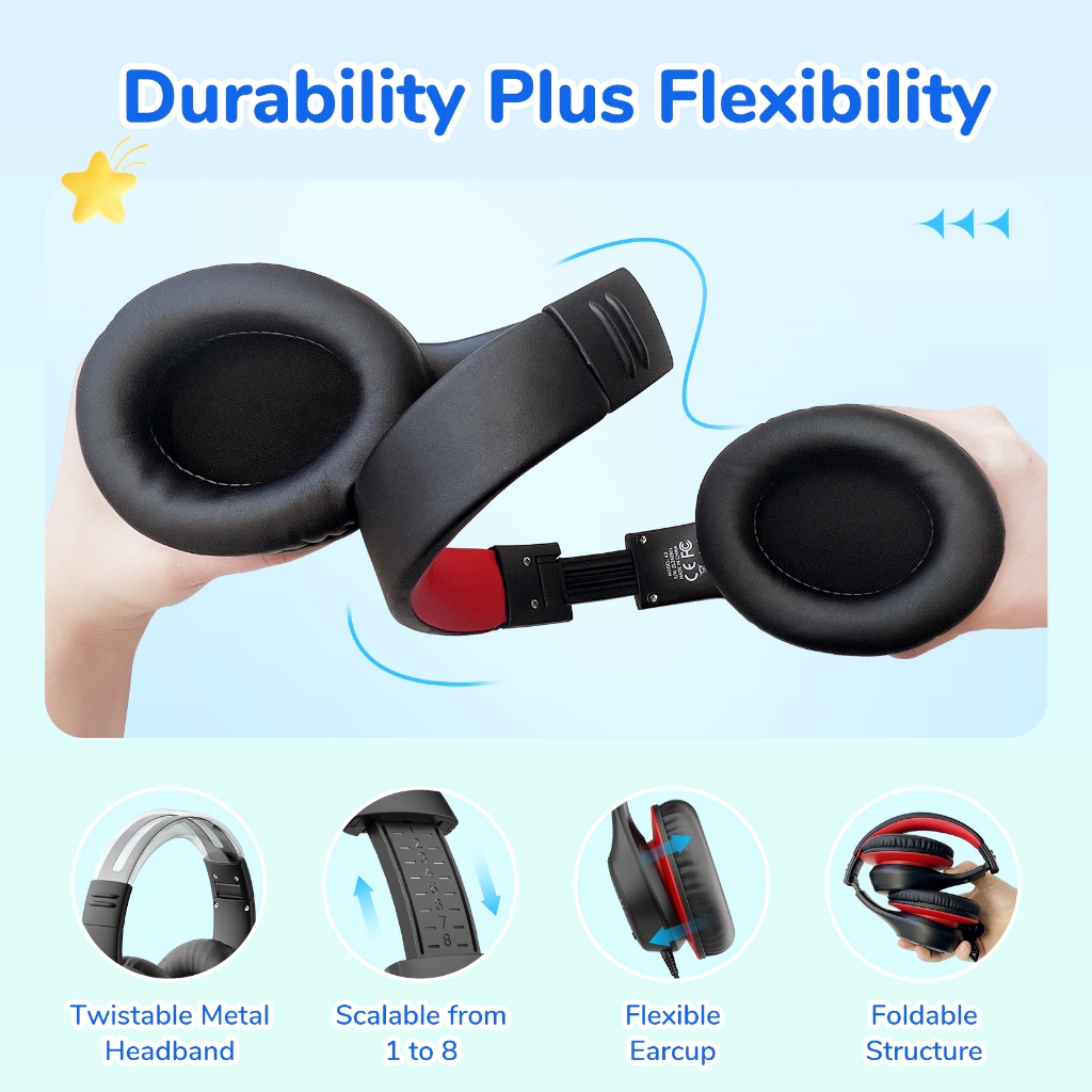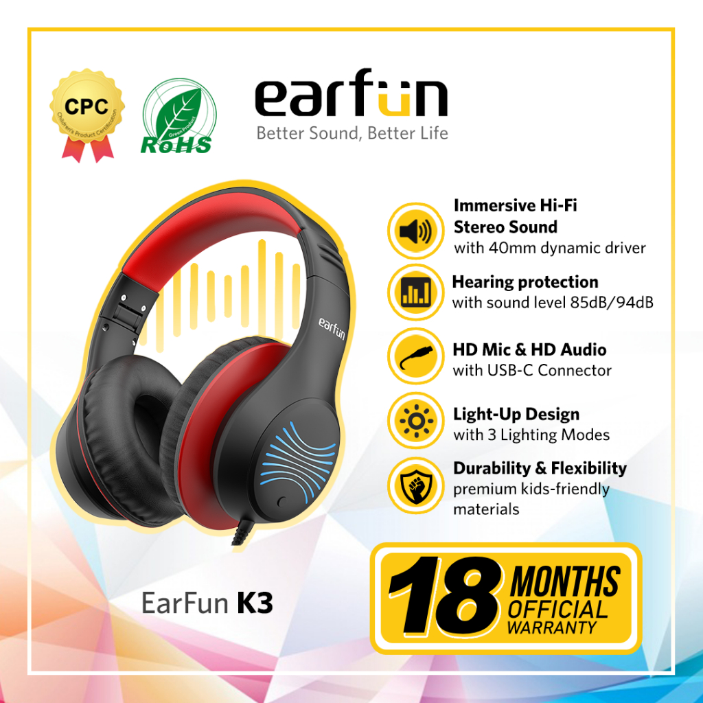 Headset Anak dengan Microphone, Kabel USB C, & LED EarFun K3 Kids Headphone – Portable
