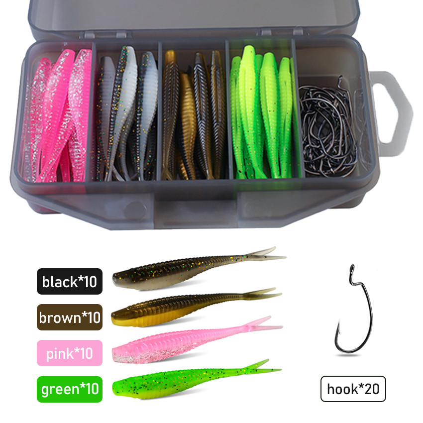 61Pcs Umpan Soft Lure 1 Set Box, Kotak Umpan Pacning Ikan