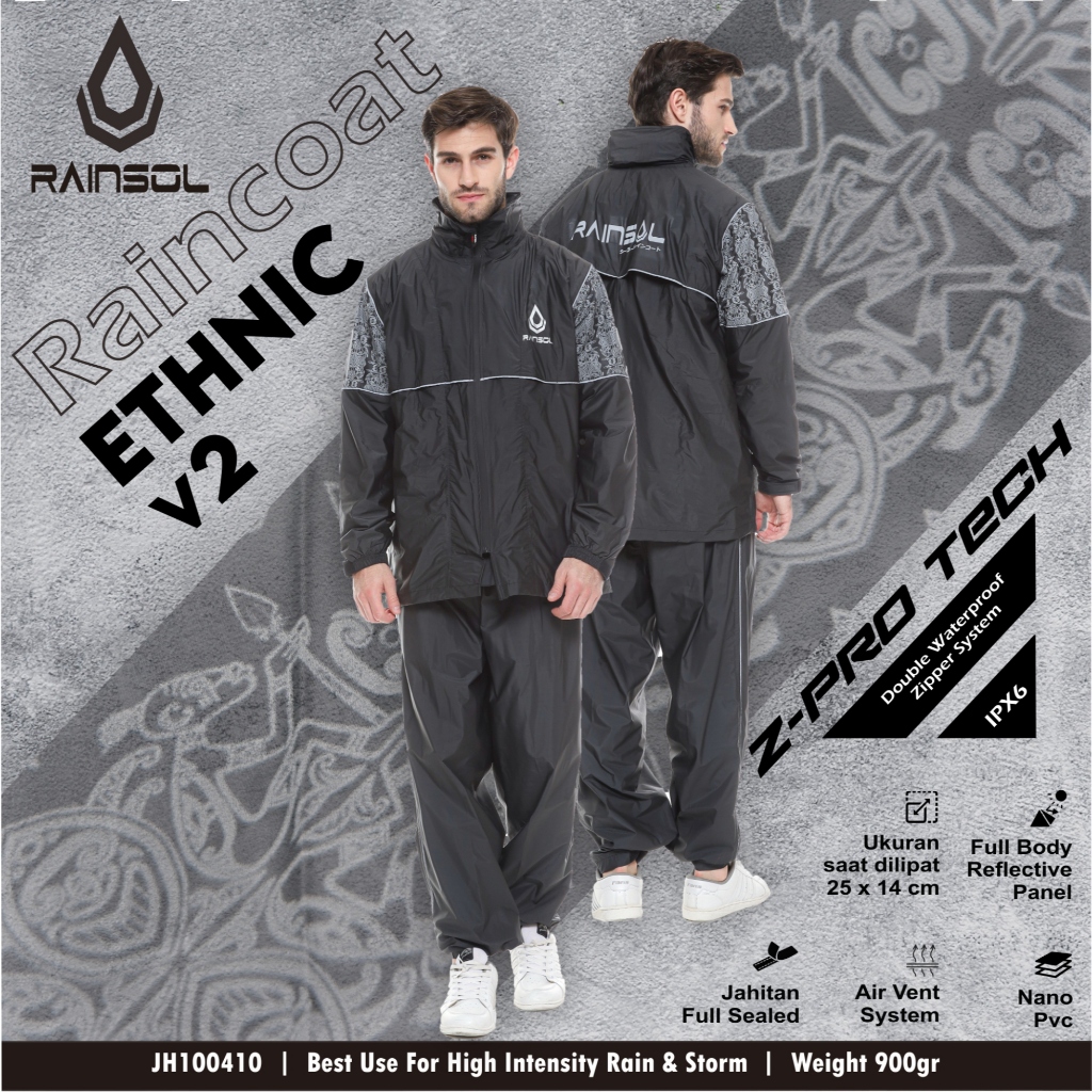 Rainsol Ethnic v2 | Jas Hujan Pengendara Motor | Double Zipper | 100 PERSEN Waterproof