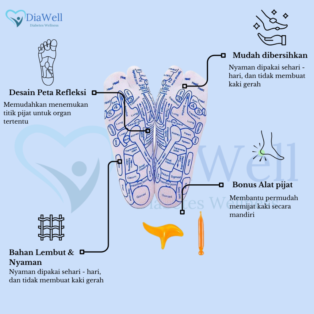 Kaus Kaki Akupresur pijat Diawell – Massage Socks, Pijat Titik & Peredaran Darah, Bonus Alat Pijat