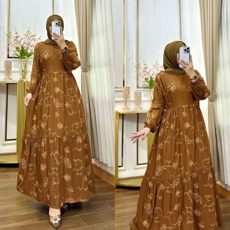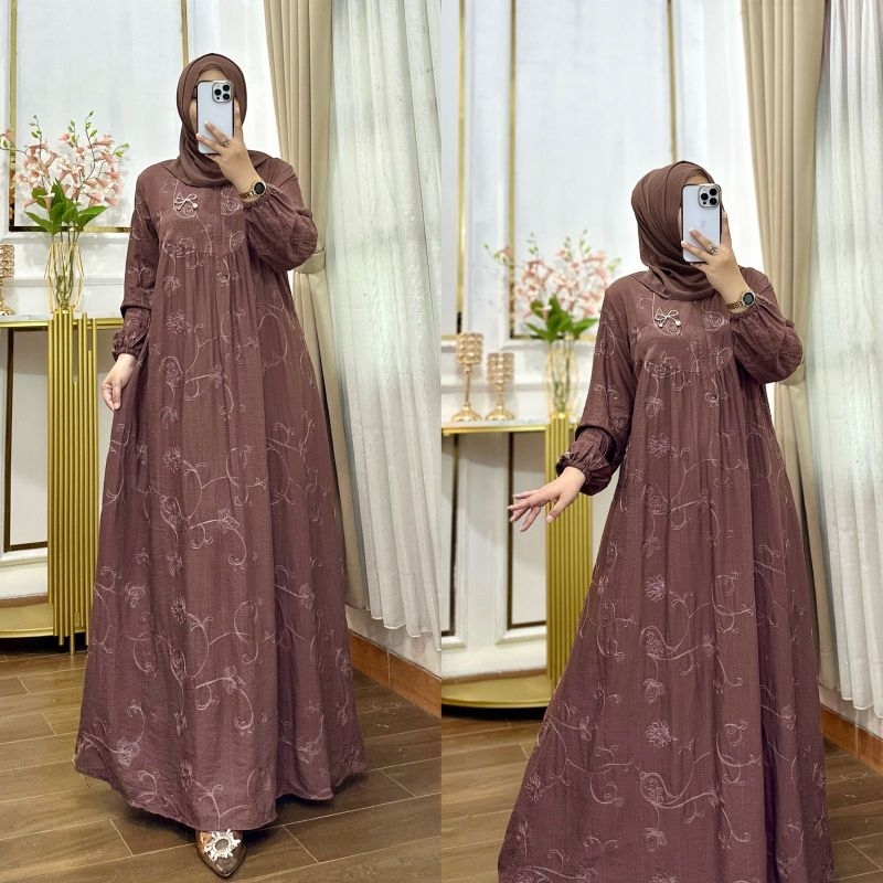 Nura Collection Official - Gamis Katun Polo Bordir - Baju Gamis Wanita Model Terbaru Bahan Katun Polo Bordir - Gamis Pesta/Gamis Harian/Gamis Lebaran - Gamis Kekinian - Gamis Bordir - Nuriel Shop