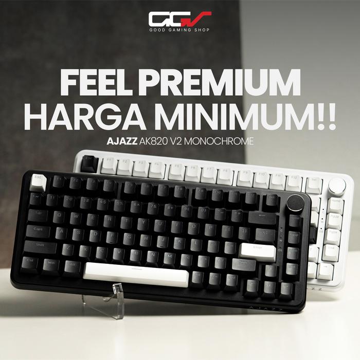 Ajazz Ak820 V2 Monochrome 75 PERSEN Hotswappable Keyboard With Gasket Mount - Gaming Keyboard - V1 - Putih, Blue Switch