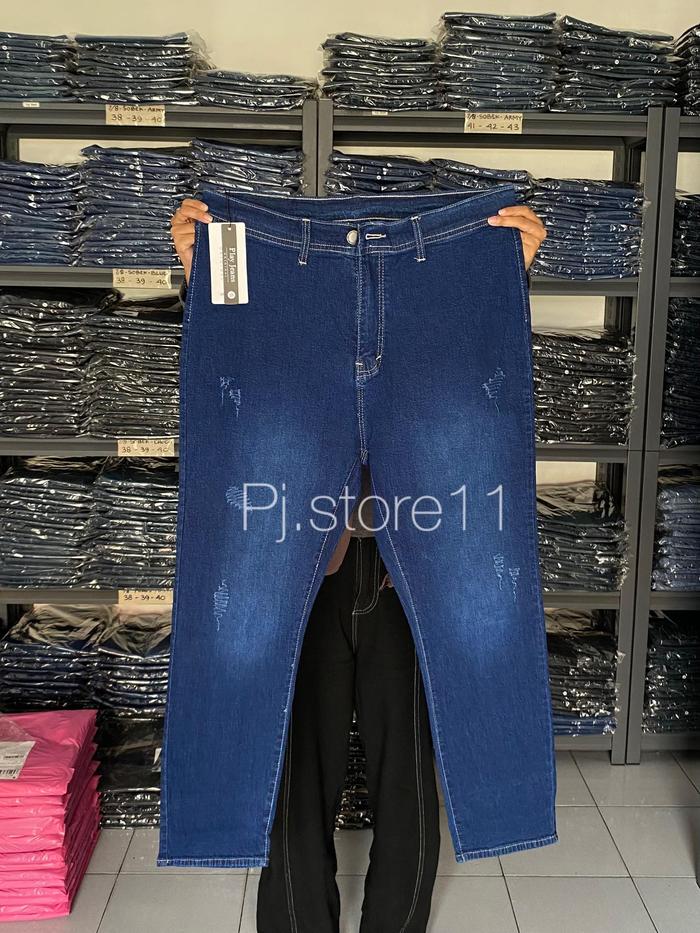 Play Jeans Celana Jeans Highwaist Jumbo Wanita Hitam Nyaman Bahan Stretch Ziper Premium Size 31-42 Celana Jeans Wanita H