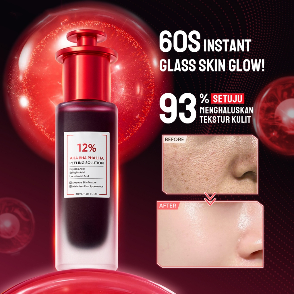 BPOM Serum Asam Eksfoliasi 12 PERSEN AHA/BHA/PHA - perawatan kulit kaca 30ml untuk jerawat & mengecilkan pori-pori