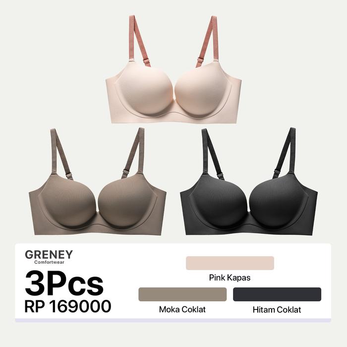 Greney-Gbras-(3Pcs)Bra One Piece Warna Bh Wanita Beha Pakaian Dalam Remaja Basic Tanpa Kawat Cewek Lingerie Plain Desain