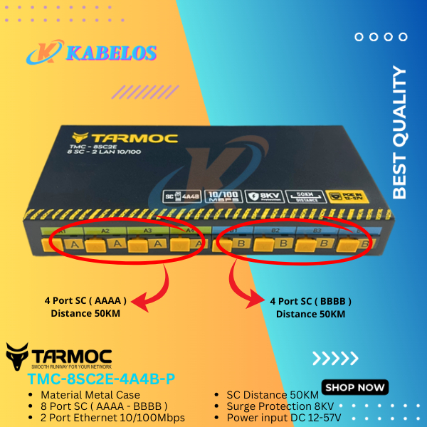 Tarmoc TMC-8SC2E-4A4B-P | Media Converter Switch 8FO 2LAN / 8 FO 2 LAN 10/100Mbps POE IN 12-57 Volt | 8SC 2LAN / 8 SC 2 LAN