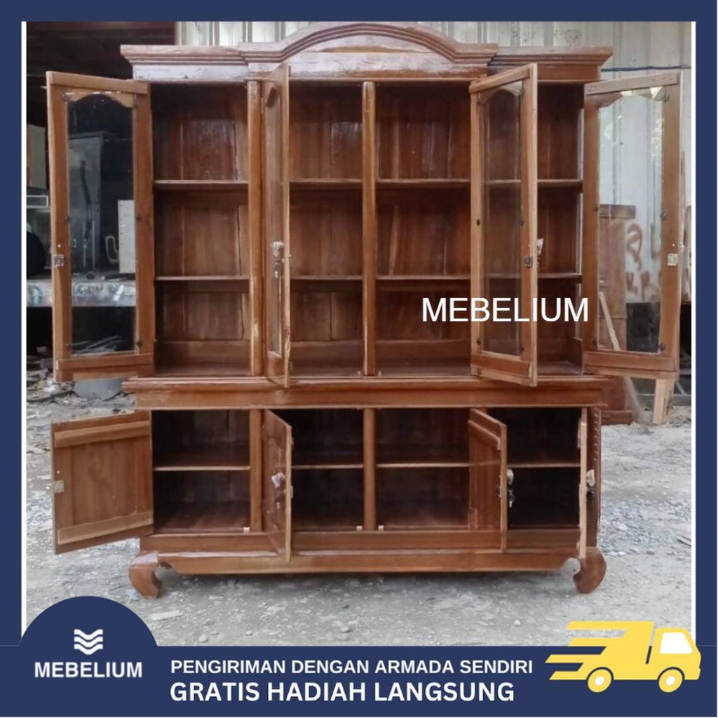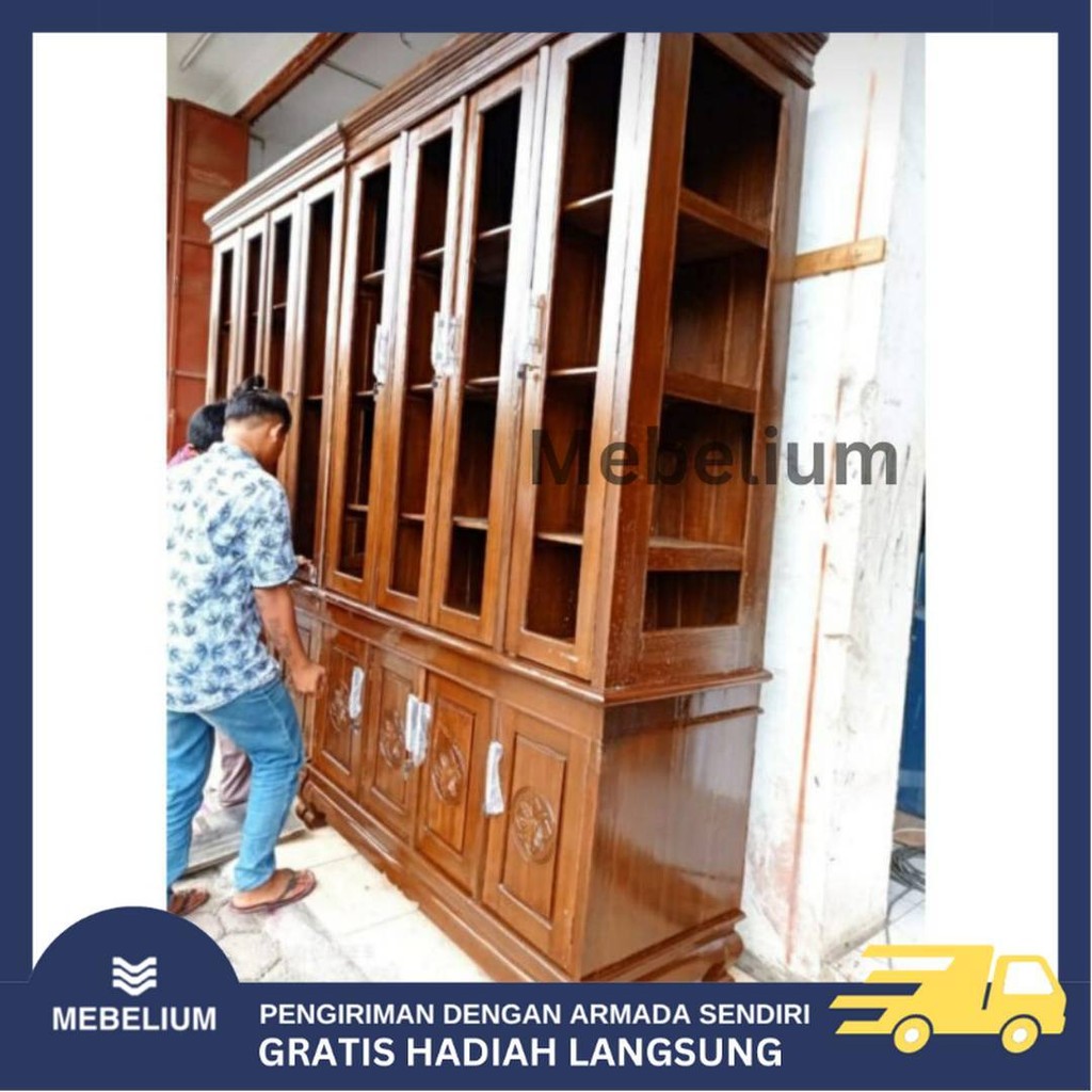 ORILemari Rak Buku Jati | Lemari Pajangan Kayu Jati Minimalis Anti Air Anti Rayap