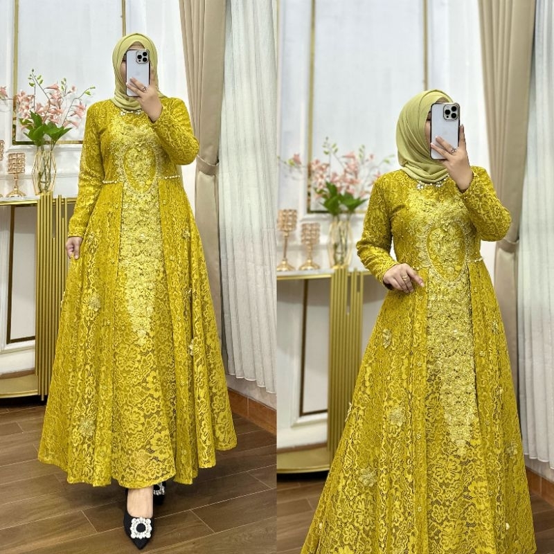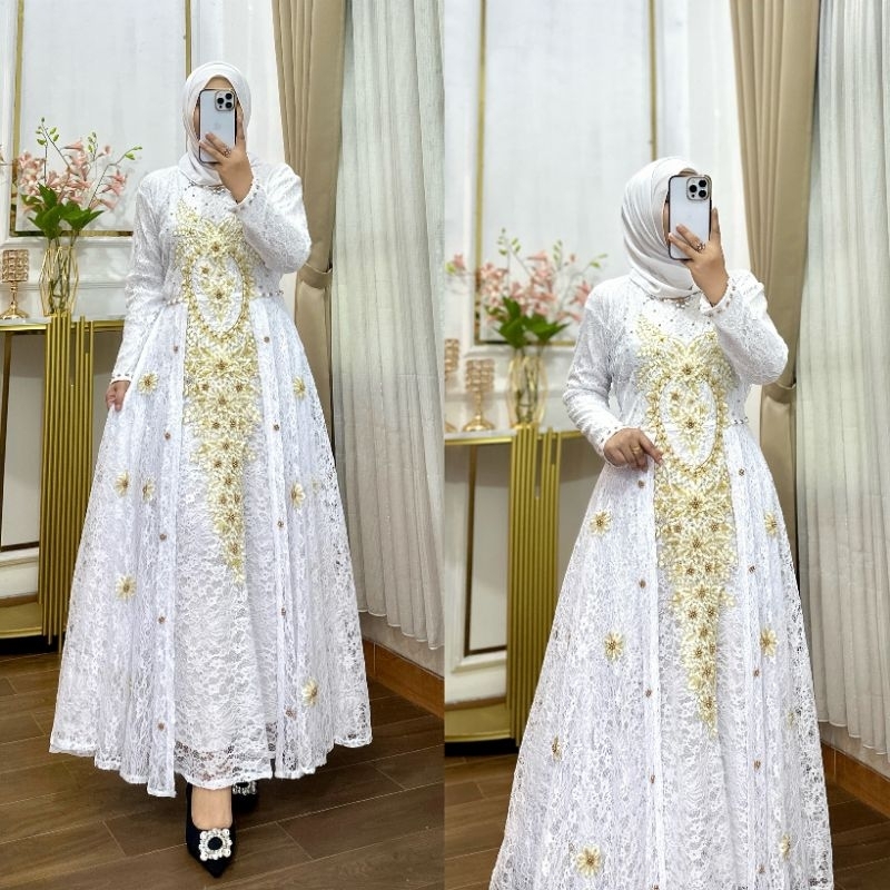 Gamis Brukat Premium // Gamis Brukat dengan Bordir goId ready Bigsize//Gamis pesta Terbaru