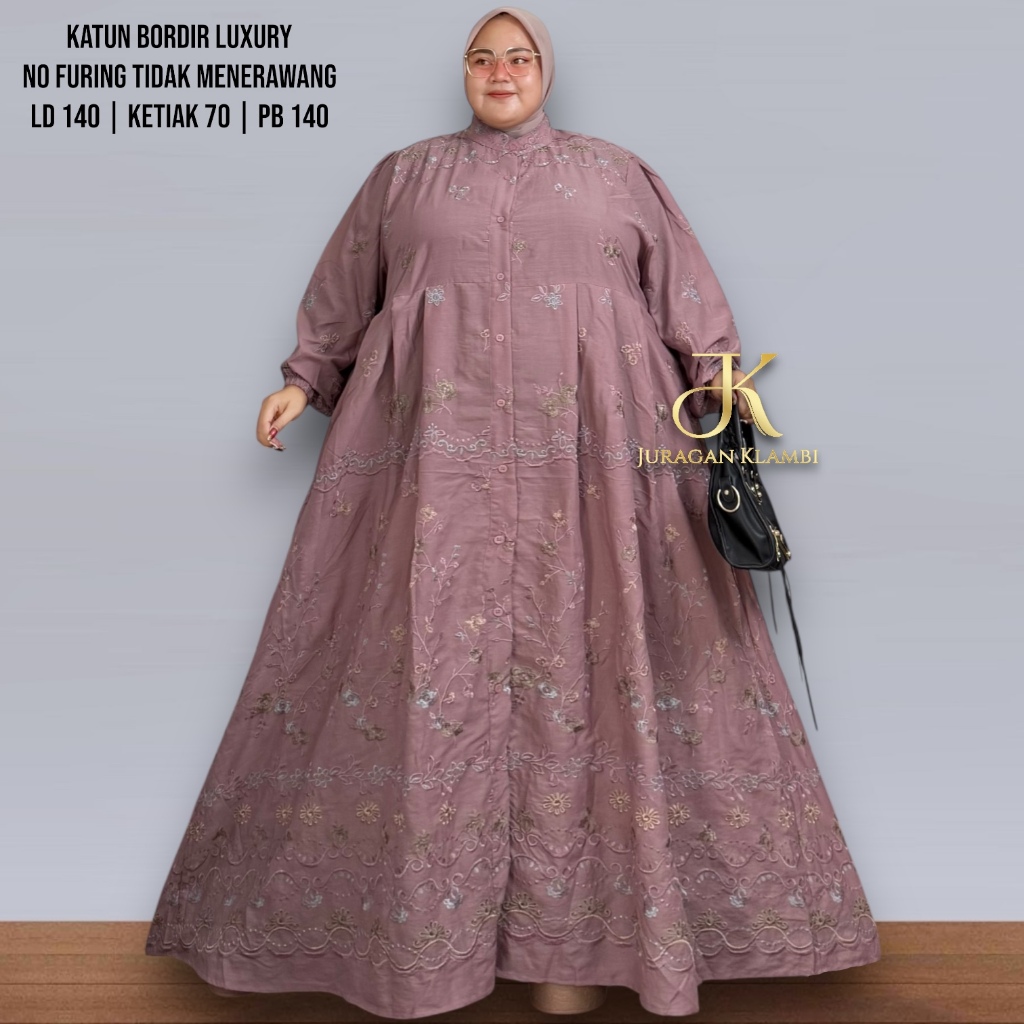 Gamis Jumbo LD 140 Katbol Bordir Premium Full Furing HQ Estimasi BB 80-140KG+ By Juragan Klambi