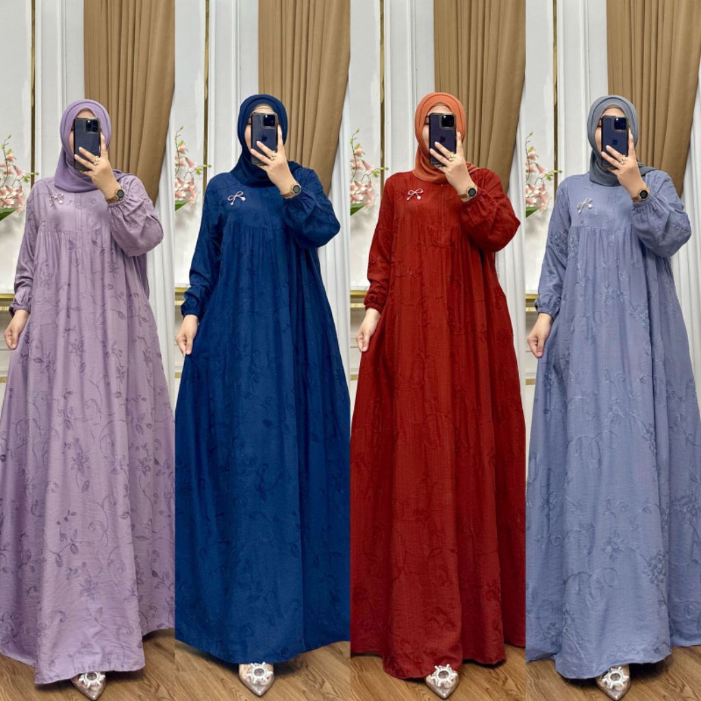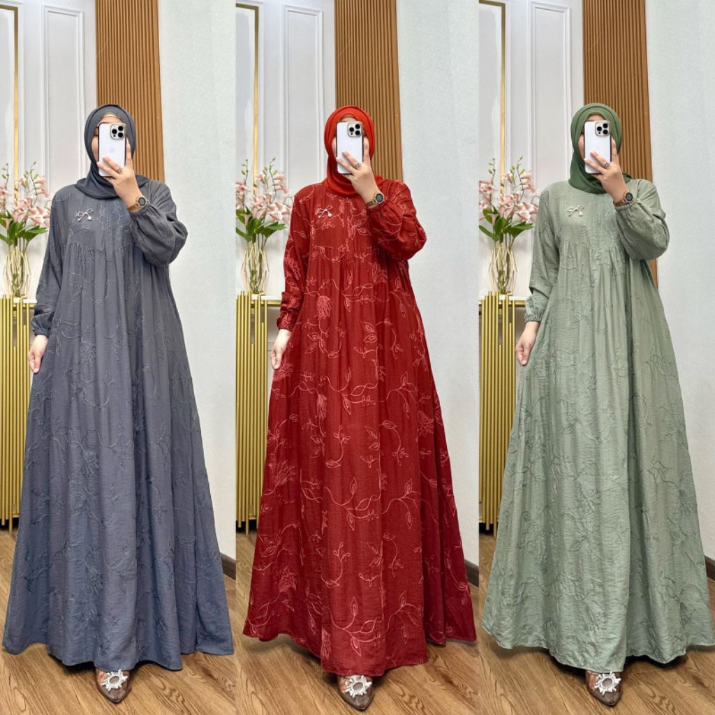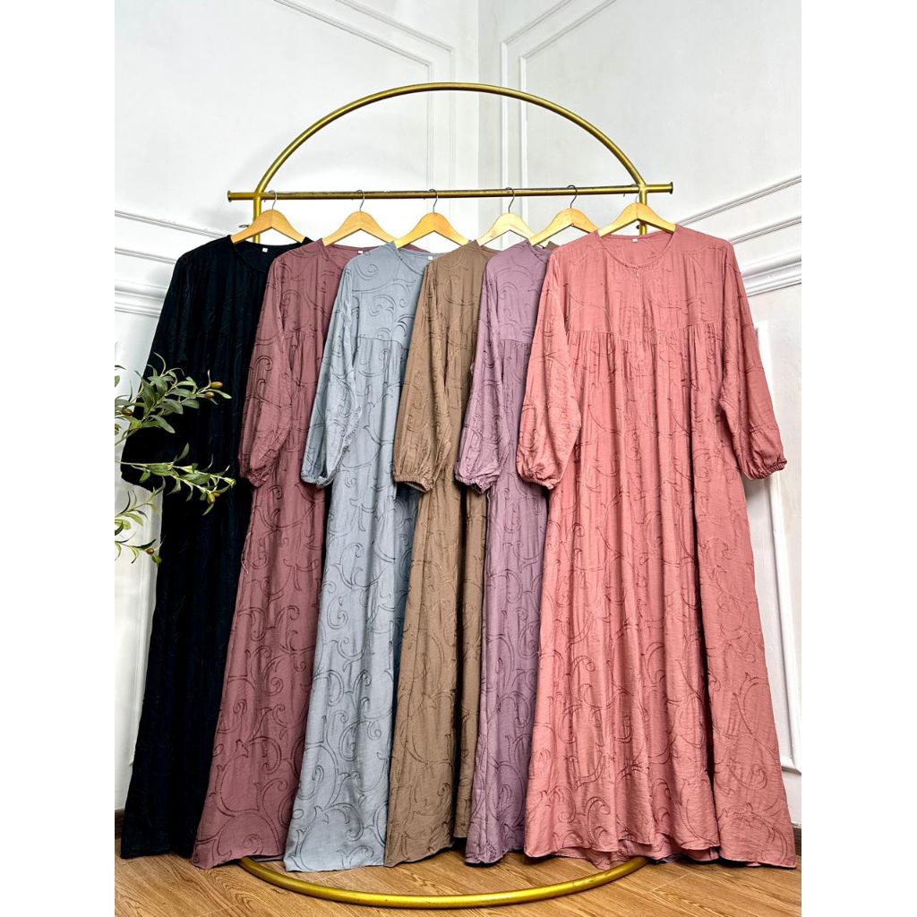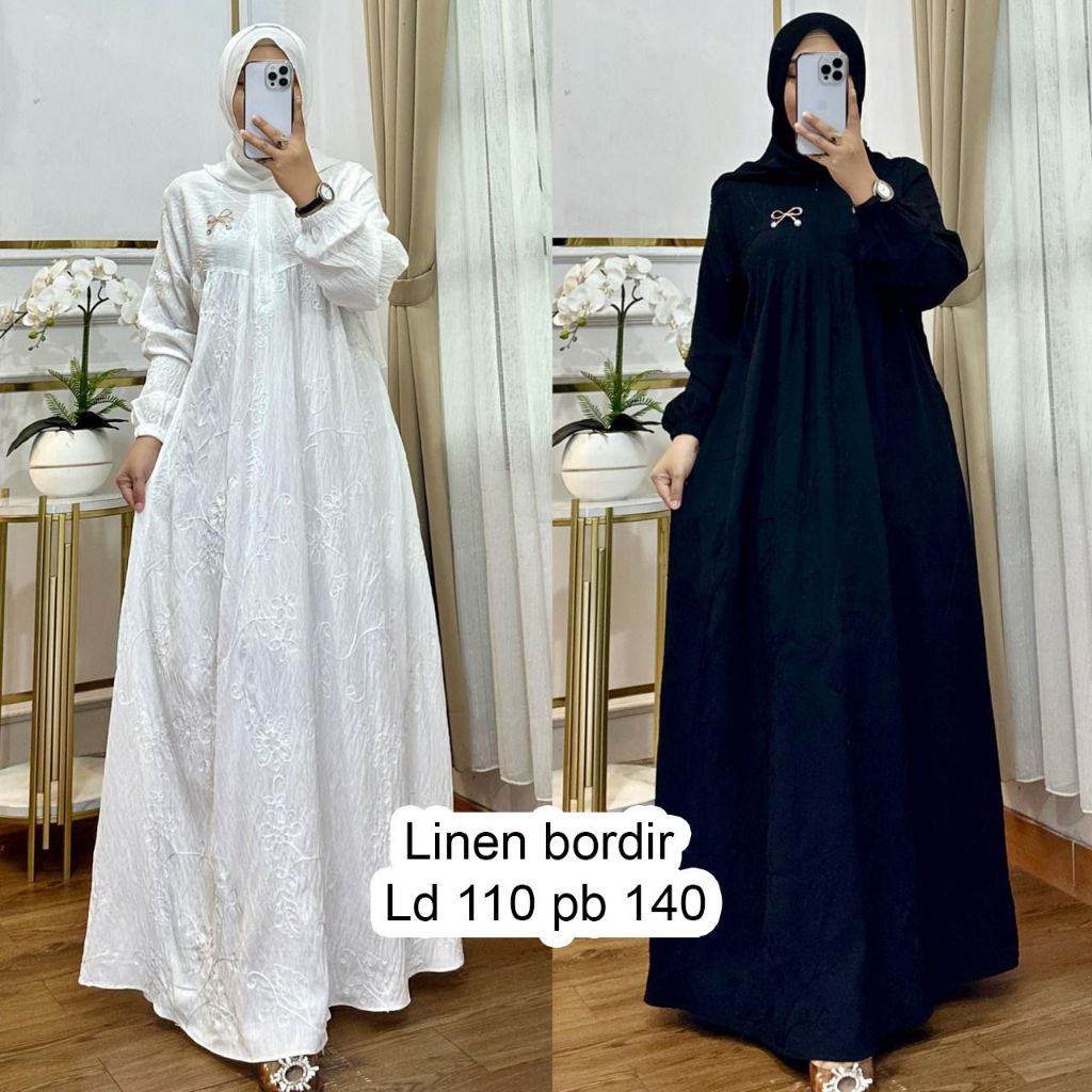 Pakaya -GH- GAMIS LINEN BORDIR Muslim Wanita Dress Lebaran