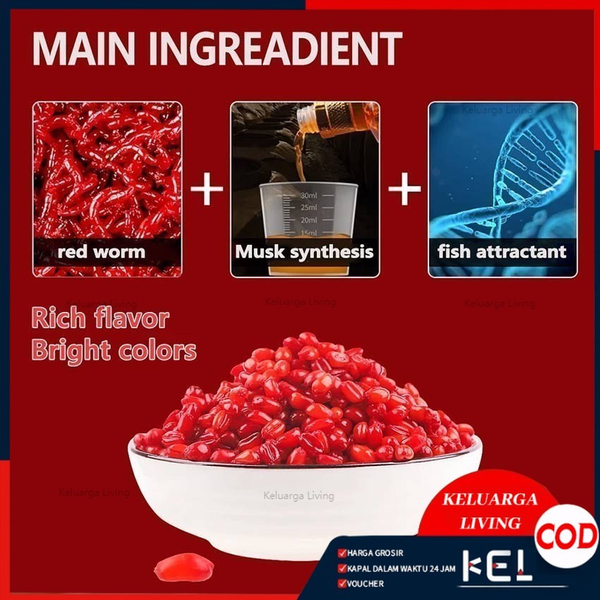 1000Pcs Umpan Pancing Pelet Ikan Cacing Merah Memiliki Aroma Menarik Mangsa Ikan