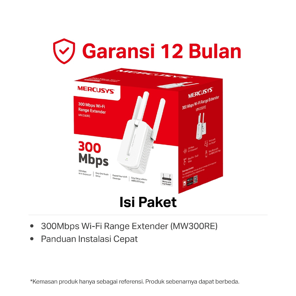 Mercusys | MW300RE | 300Mbps Wi-Fi Repeater | 2.4GHz | 3 Folding Antennas | Wireless Booster | WPA
