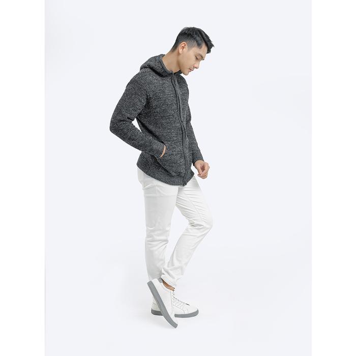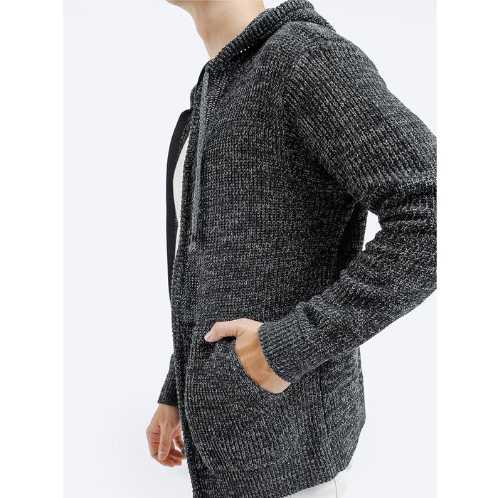 Gomuda Sweater Rajut Pria Hoodie Full Zip Knitwear Lengan Panjang Grey - Abu-Abu, Xxl
