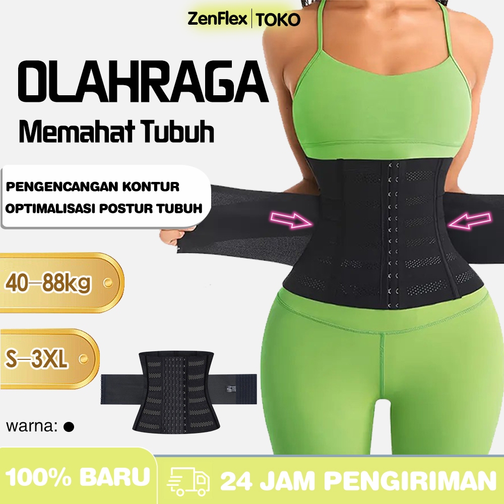 ZenFlex S-3XL Korset Olahraga Wanita-Sabuk Pengencang Perut Lateks Elastis Belt Fitness Penghilang Lemak Korset Yoga Pembentuk Tubuh