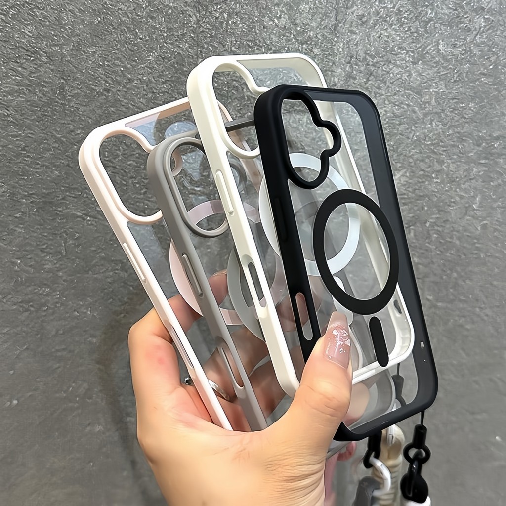 Magsafe Lanyard Case iPhone 11 12 13 14 15 16 pro max 14 15 16 plus Transparent Nylon lanyard Casing iPhone 11 12 13 14 15 16 pro max plus