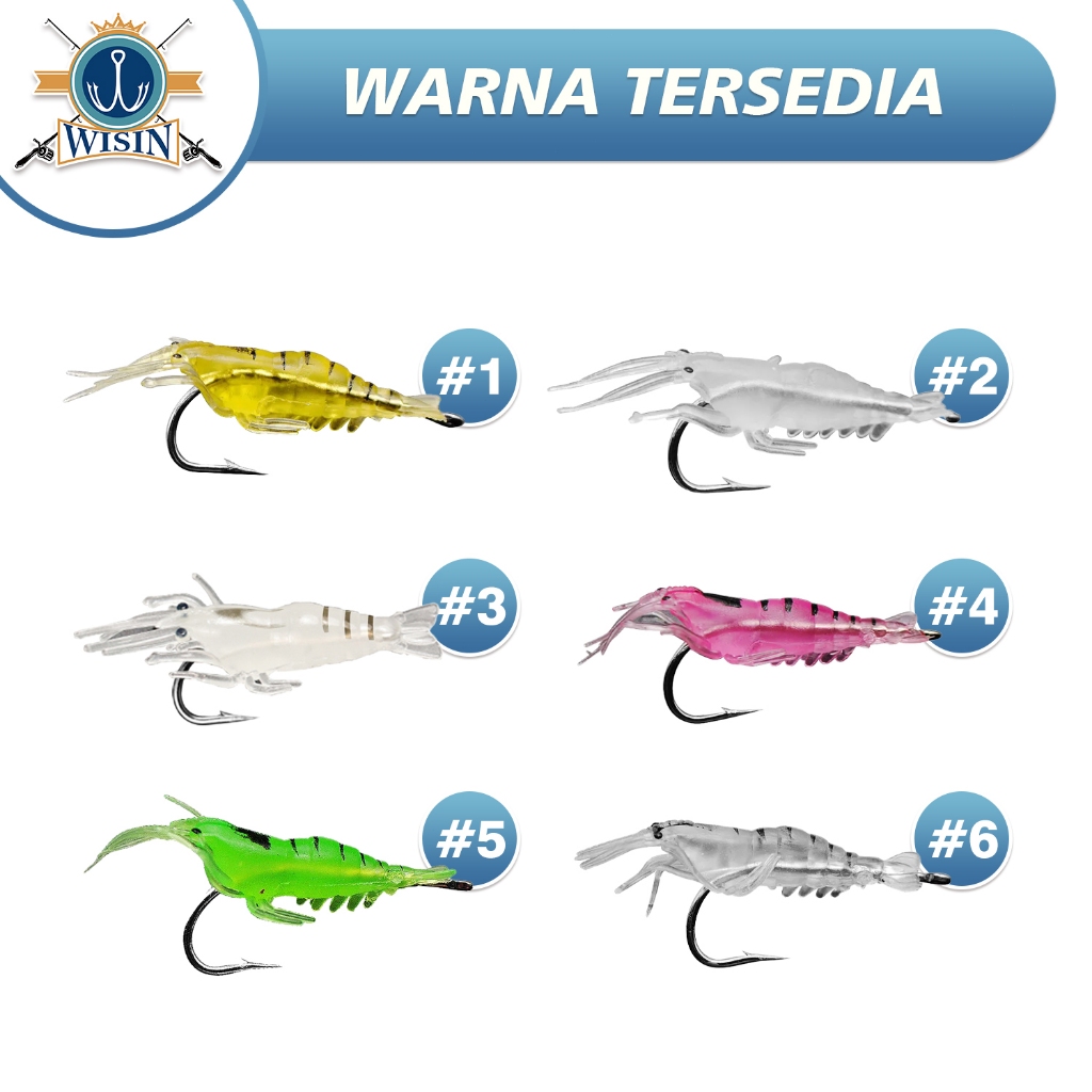 WISIN Soft Lure Umpan Pancing Udang Tiruan 4cm Sudah Terpasang Kail 1Pcs