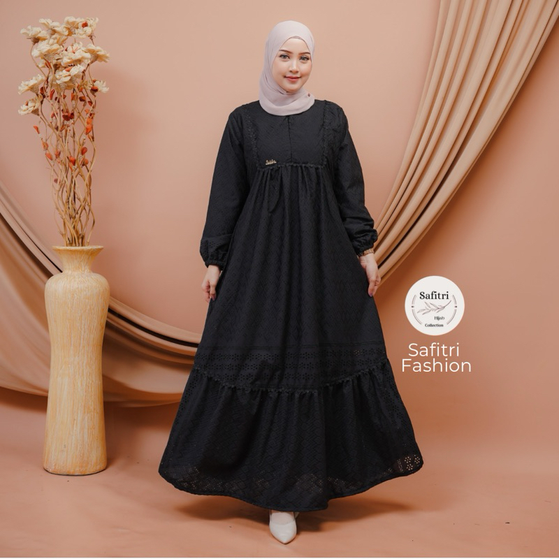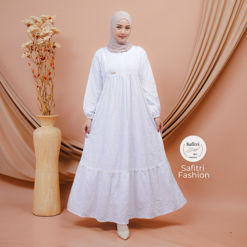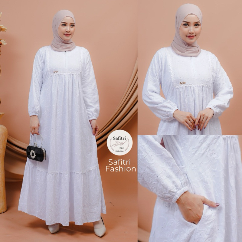 ARUNA DRESS Gamis bahan katun bordir bolong katbol tebal full furing kondangan mewah luxury manasik haji ihram by Safitri Fashion