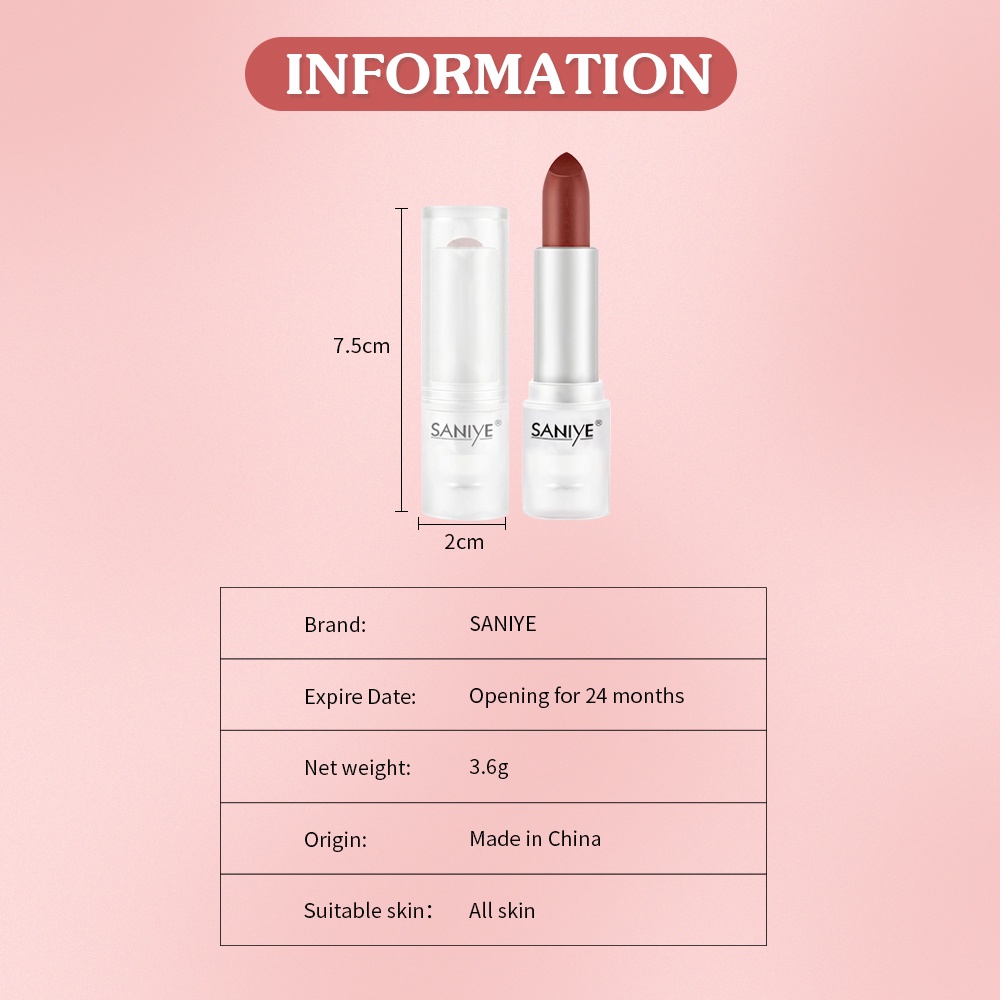 SANIYE【BPOM】Matte Lipstik 9 Warna Velvet Es Batu Transparan Lipstick Bibir Tahan Lama K2000