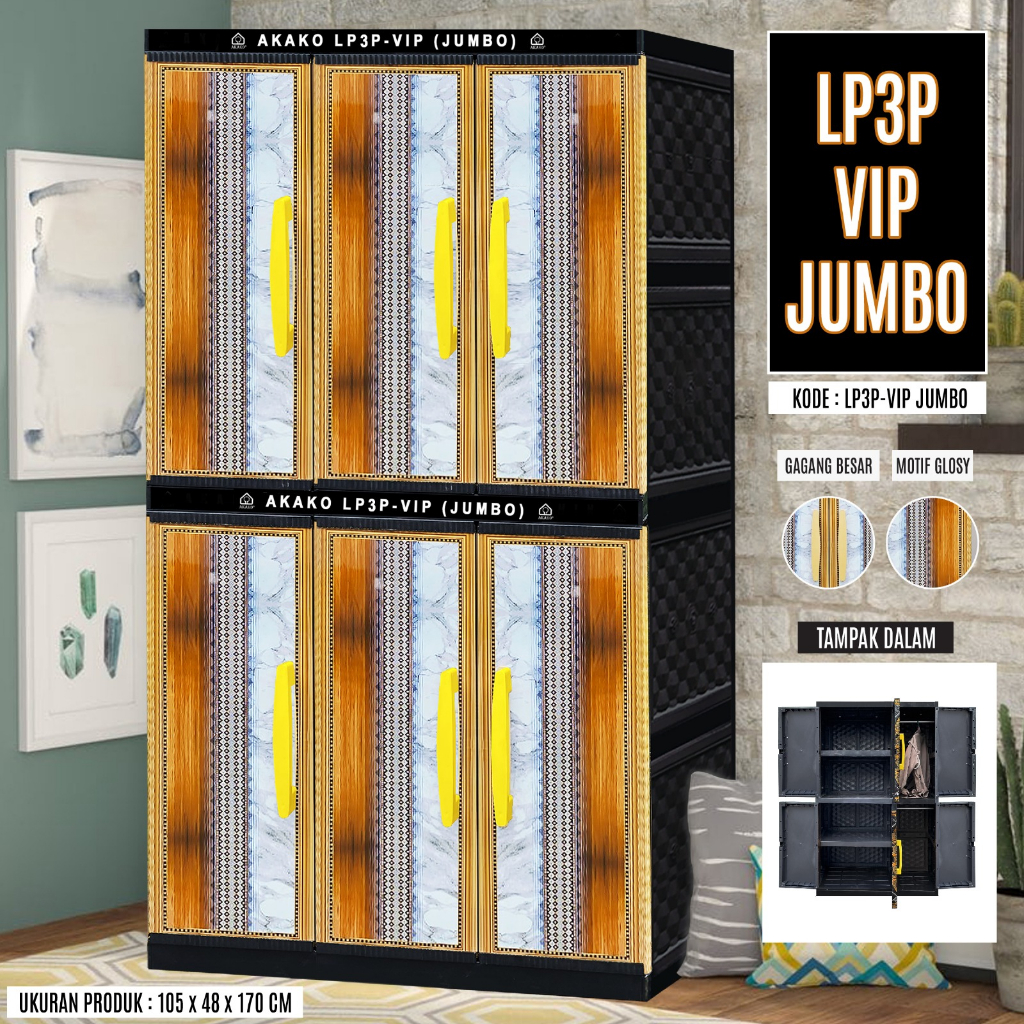 Lemari Plastik Pakaian Baju Akako LP3P SUPER JUMBO BESAR ELITE 3 & 2 PINTU