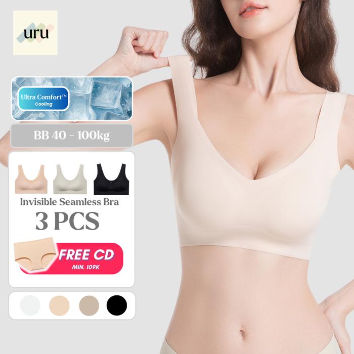Uru [3Pcs] Invisible Seamless Bra Tanpa Kawat | Dalaman Wanita Bh Beha Cup A B C D Jumbo Sport Lebar - Hitam X 3, Onesiz