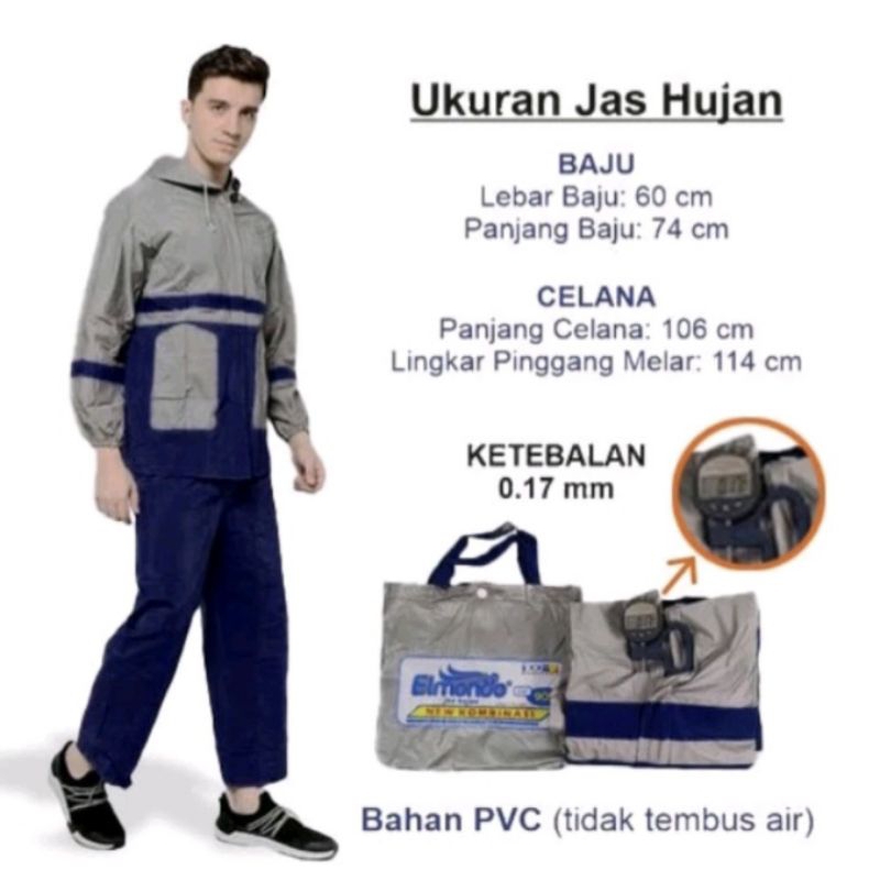 jas hujan setelan celana dewasa ELMONDO 905 new kombinasi tidak nerawang [ORIGINAL] [TERMURAH]