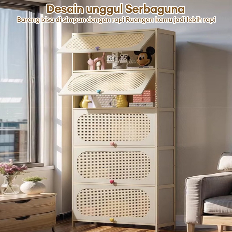 lemari pajangan Kayu Bambu Warna Putih Susu dengan Pintu Flip Desain Minimalis Hemat Ruang Ramah Lingkungan dan Tahan Lama untu