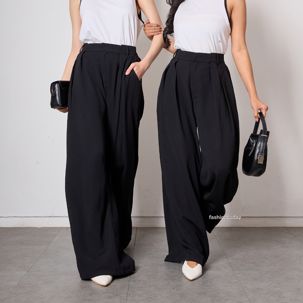 Harlow Pants Fashiontoday - Celana Panjang Kulot Wanita Straight Highwaist Premium - Bisa Sampai Big Size S/M, L/XL 100kg