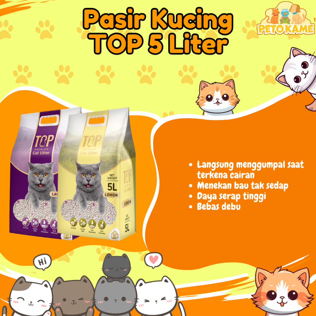 Pasir Kucing T0P 5 Liter | Pasir Gumpal Wangi Untuk Kotoran Kucing
