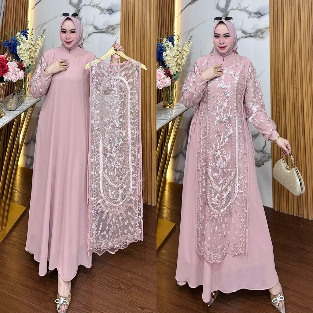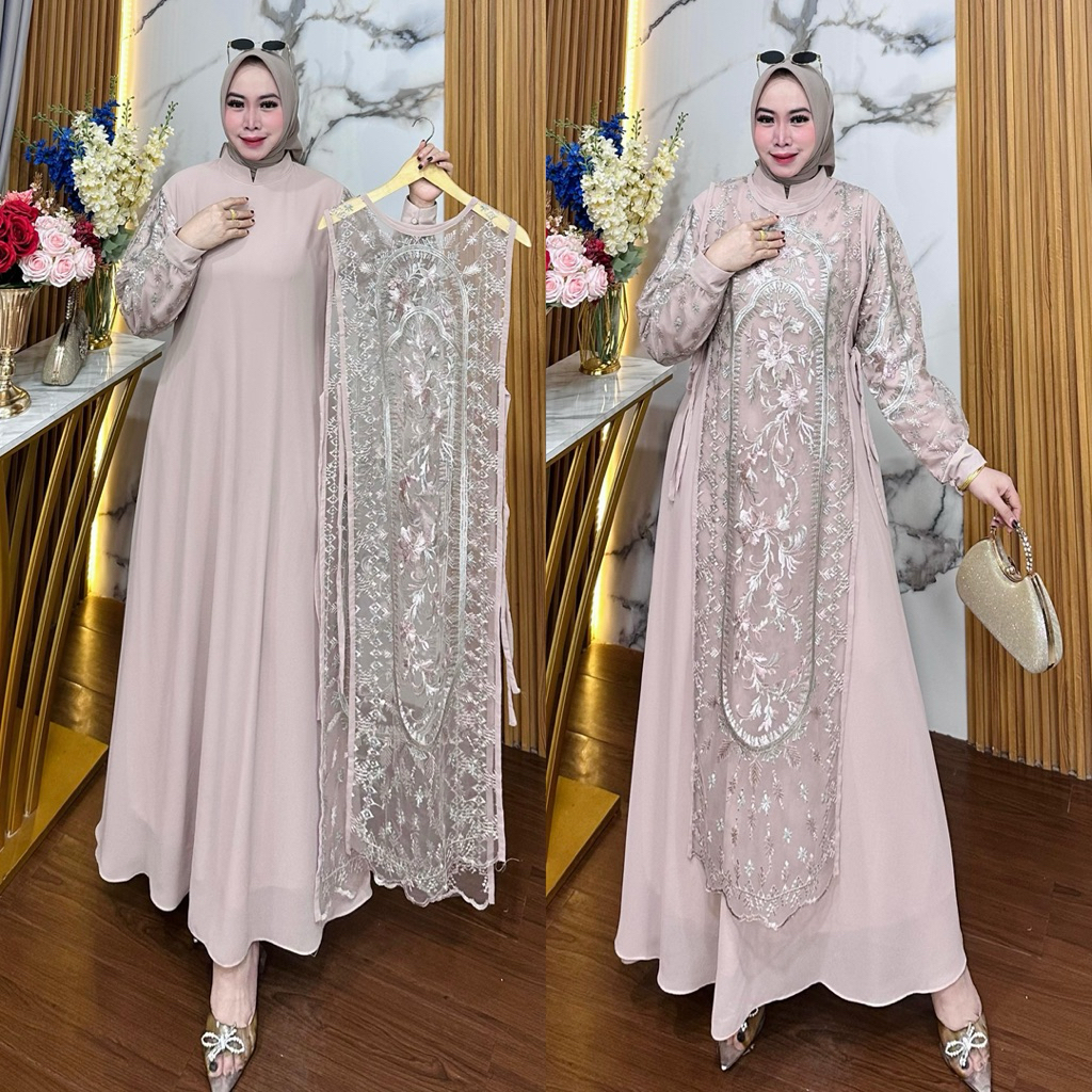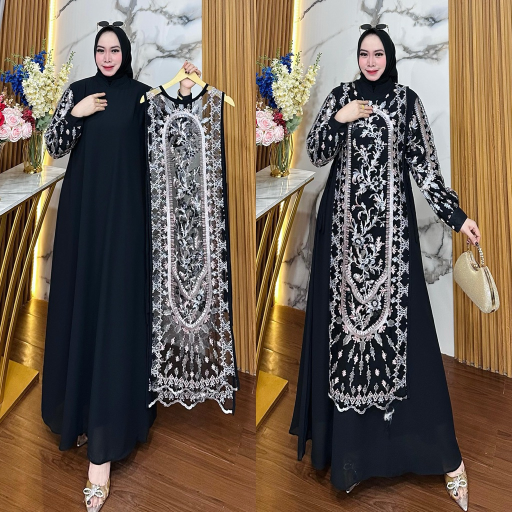 Khaula Dress Gamis Model Apron Tile Bordir Premium