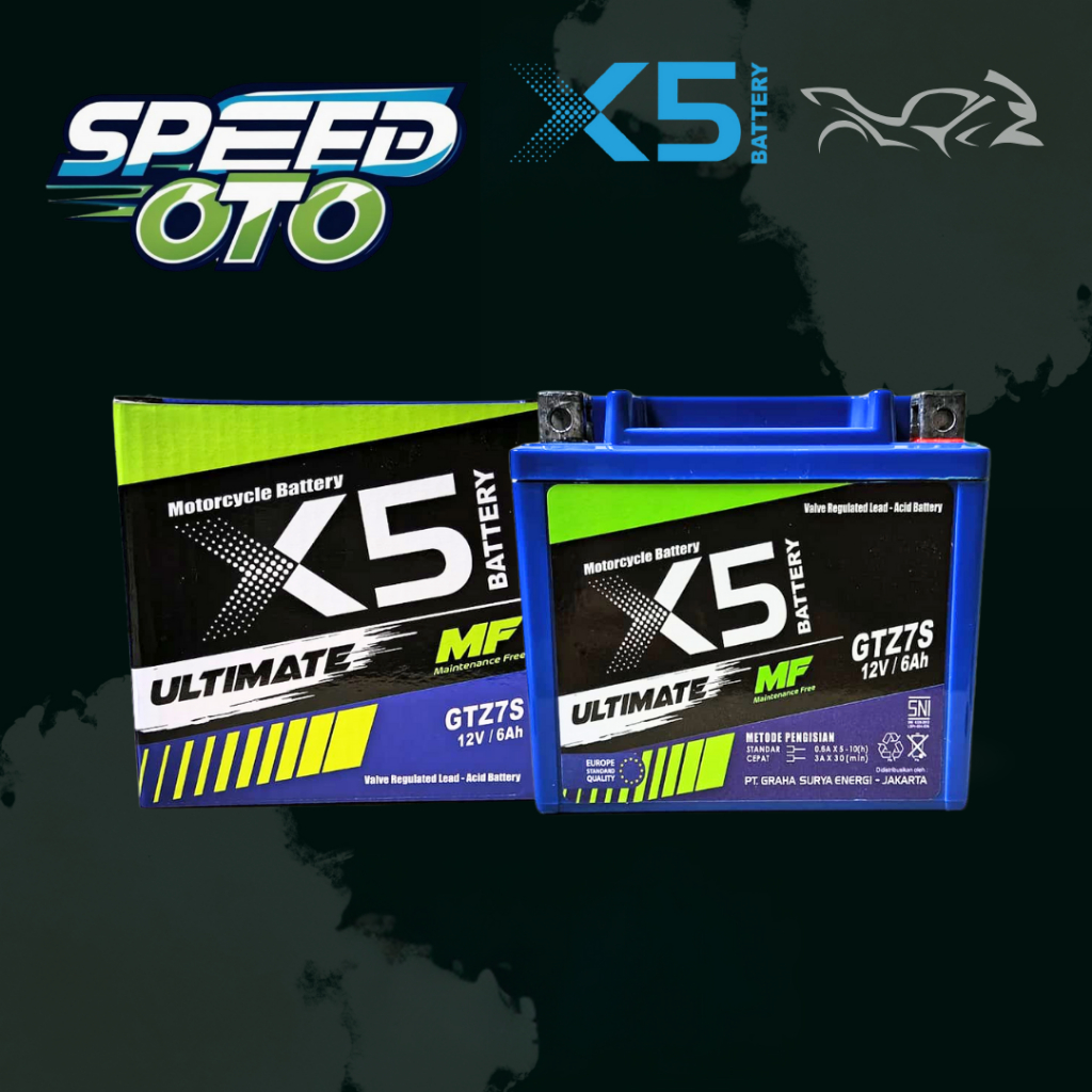 AKI Motor 6Ah 12V X5 Ultimate MF GTZ7S Kualitas Premium Standar Eropa dan Tahan Lama
