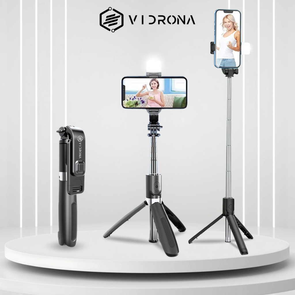 Tongsis Tripod HP 3 in 1 dengan Lampu LED - VIDRONA ELK-05, Multifungsi & Portable