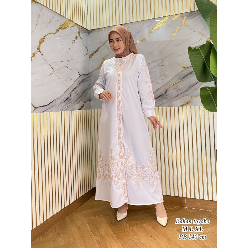 dungkan.id - MAZAYA SERIES GAMIS BORDIR KATUN TOYOBO FODU DRESS MEWAH BORDIR TIMBUL TERBARU