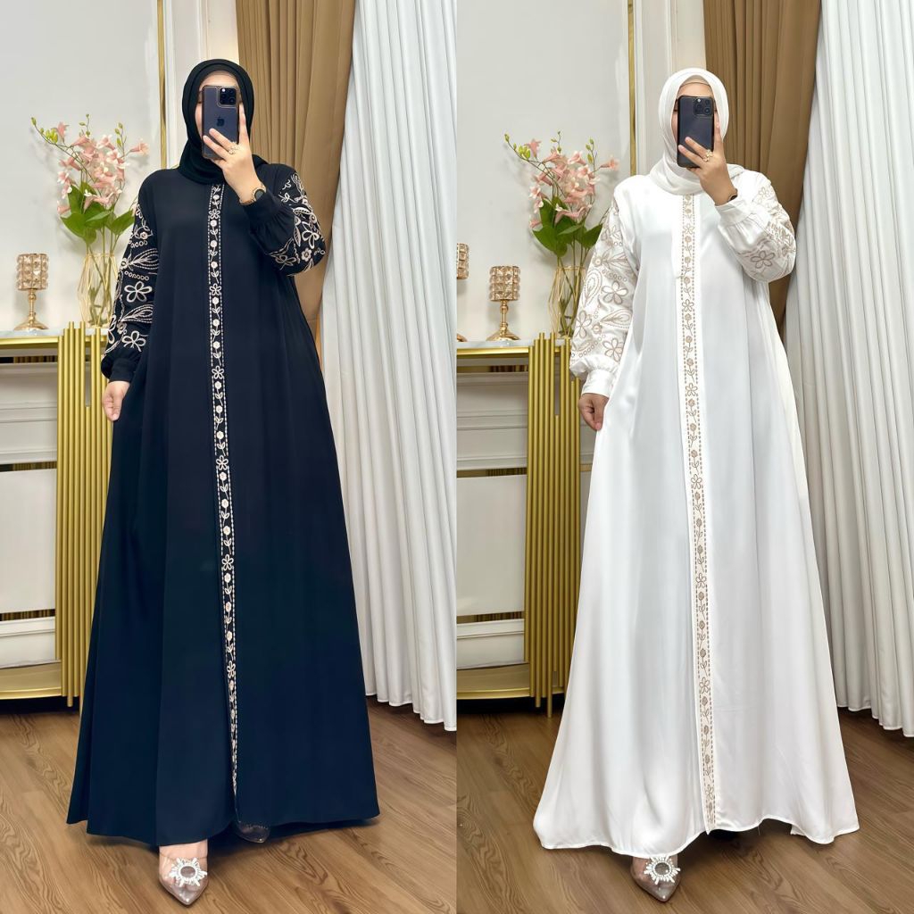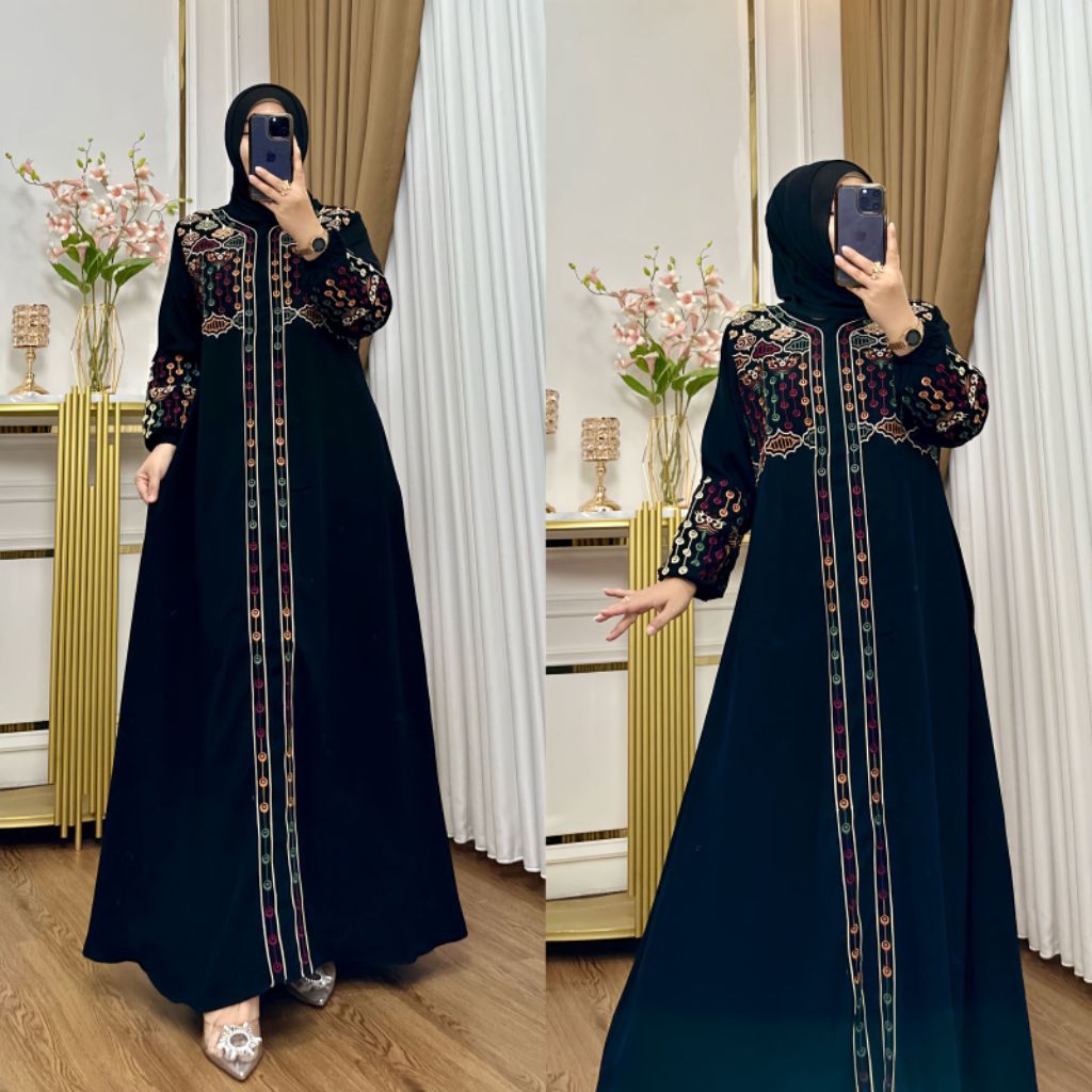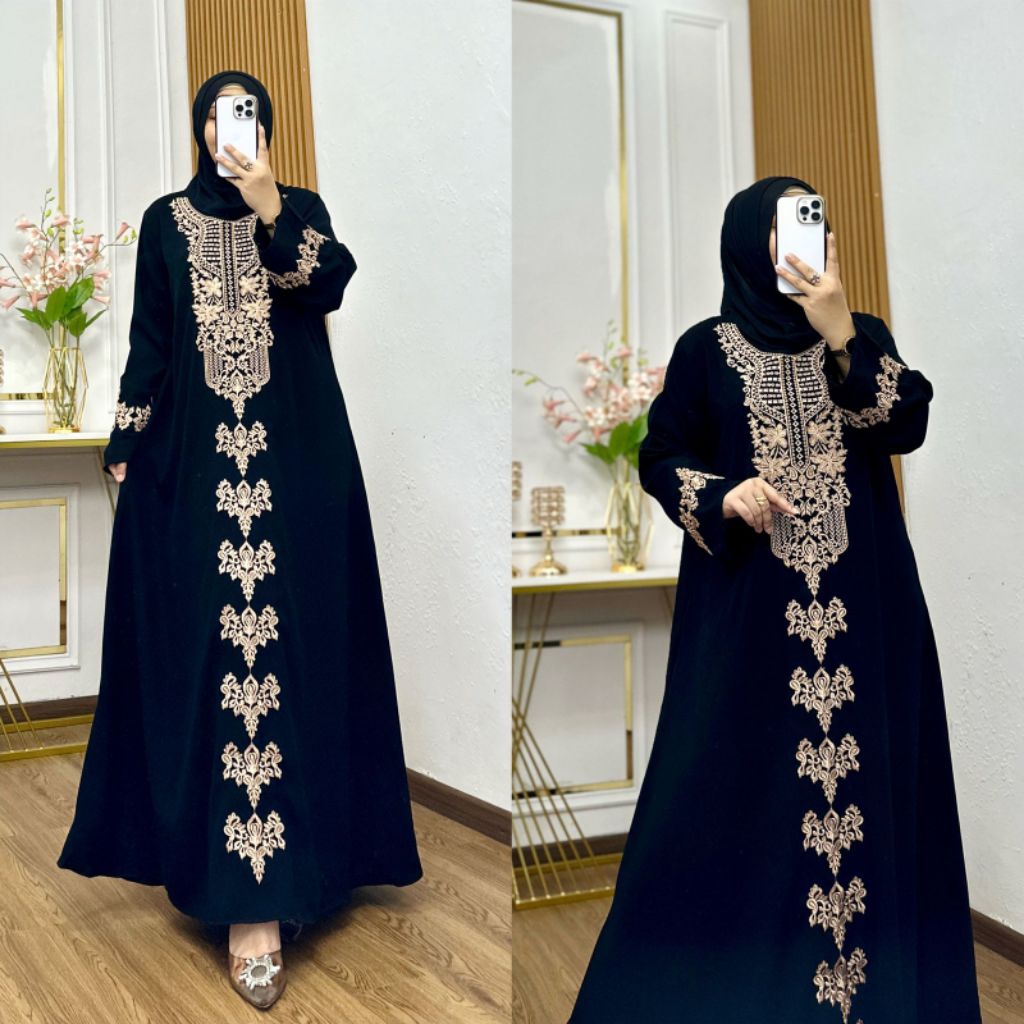 Gamis Twill Bordir, Jetblack Bordir Motif Cantik Katun Dress Wanita Lebaran
