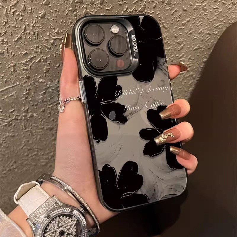 casing hard boom store black flower imd matte surface compatible with iphone 11 13 14 15 plus 12 promax x xr xs
