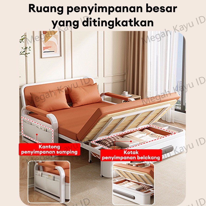 Sofa Lipat Sofa Bed 2 in 1 Minimalis untuk Tidur Tamu dengan Laci Penyimpanan Desain Kekinian