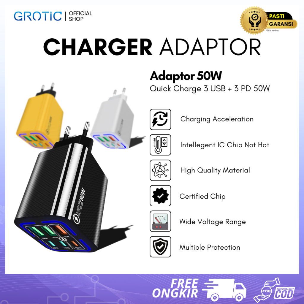 [Star]charger adaptor grotic multi ports 50w fast charging 3 usb 3 pd