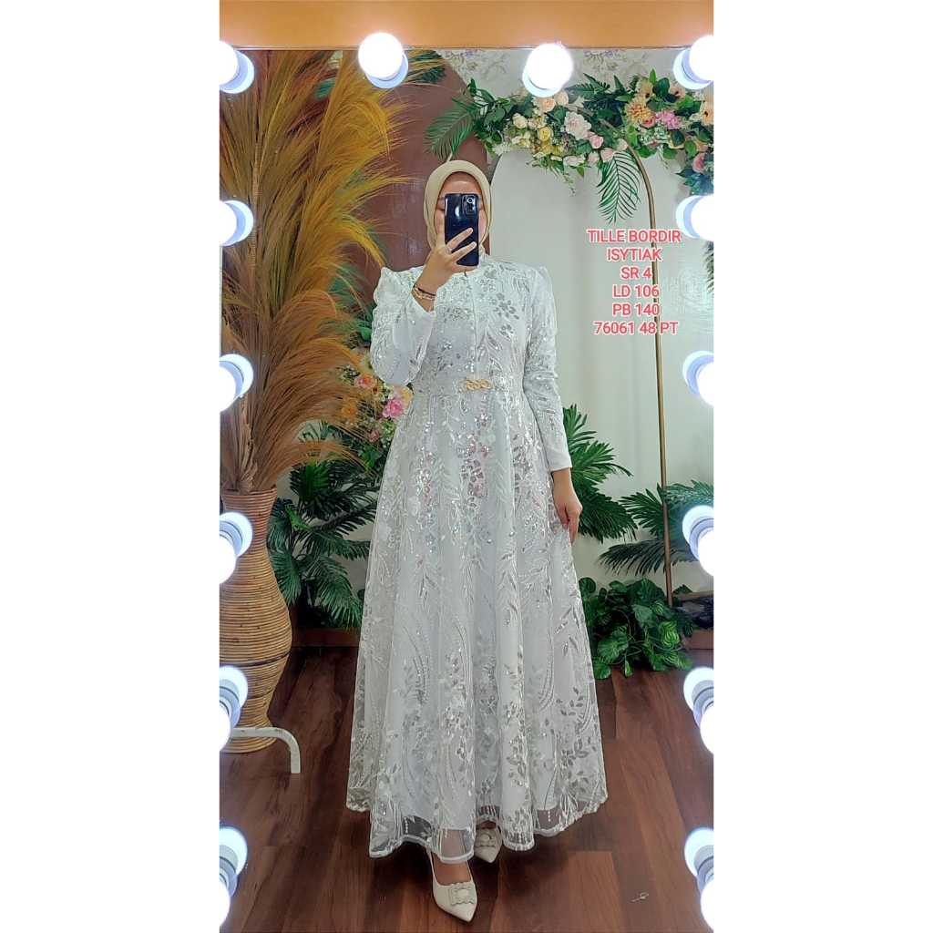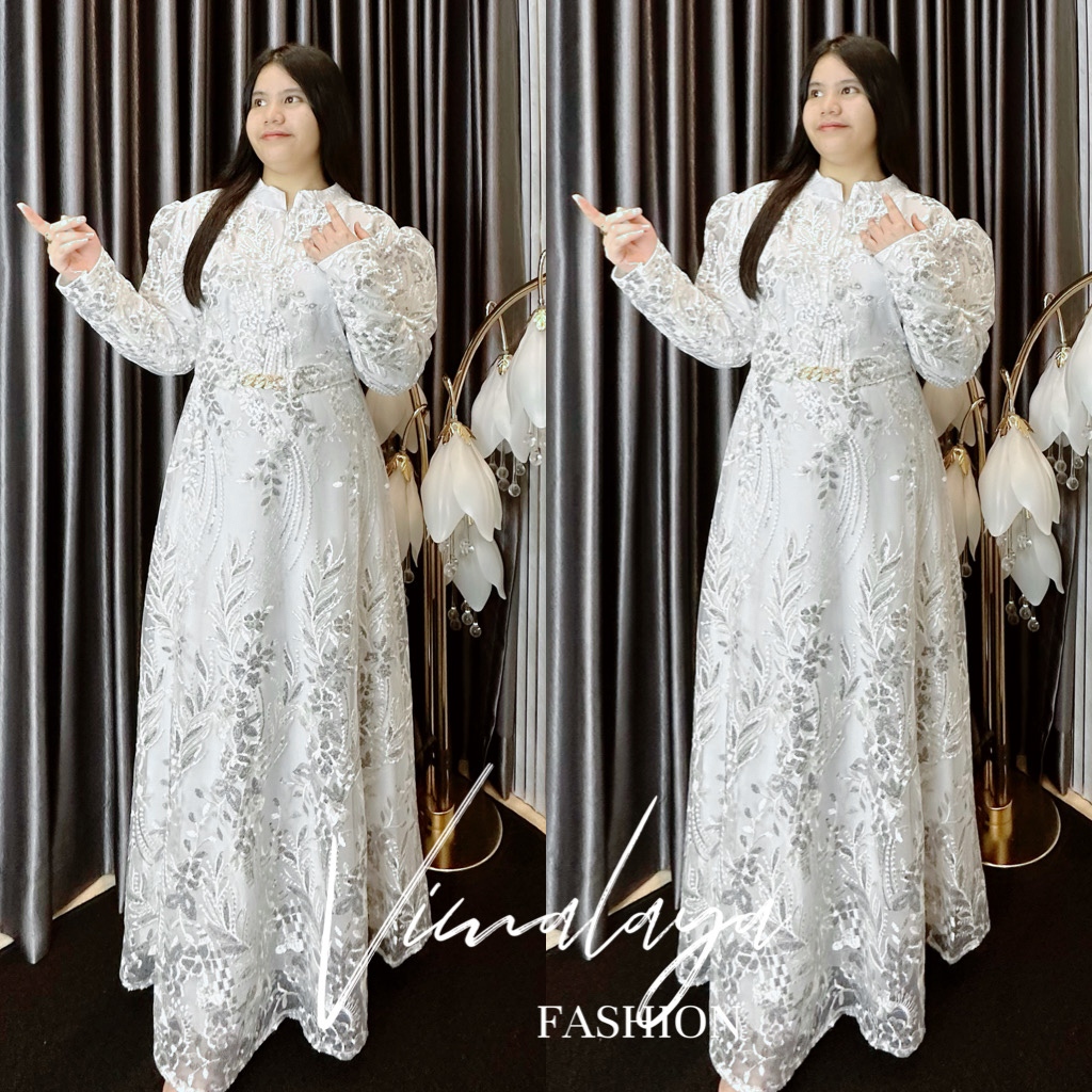 Gamis Putih Tile Bordir Payet Bunga Baju Muslim Vima 76061 46