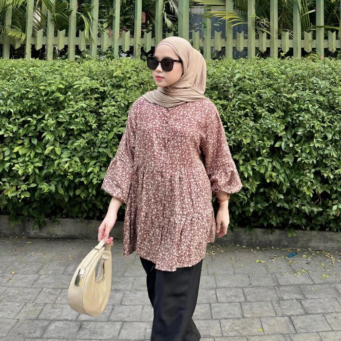 Onella Blouse Atasan Wanita Kekinian Jumbo Ld 120 Terbaru Bahan Rayon Busui By Kamalin - Onella Black, L