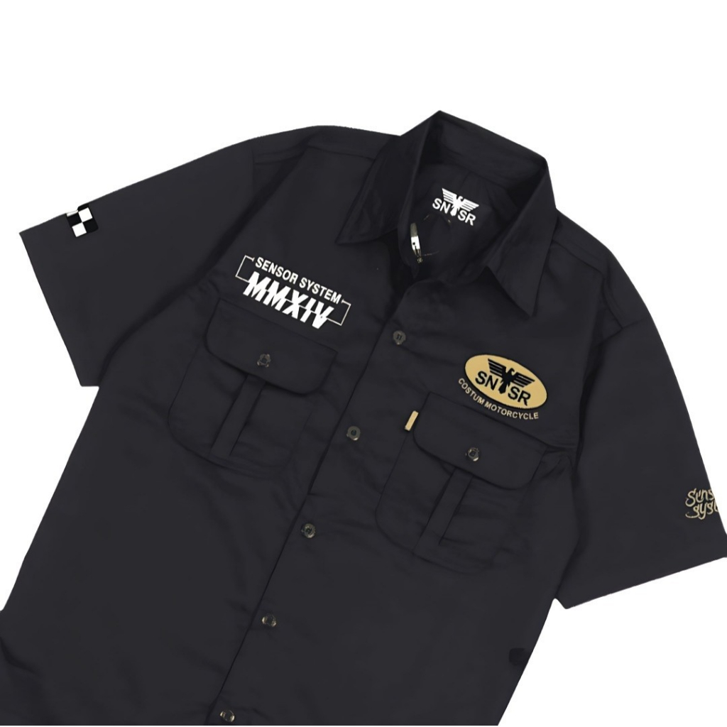 Workshirt SNSR System MMXIV Motorcycle Kemeja Workshirt Bordir Pria