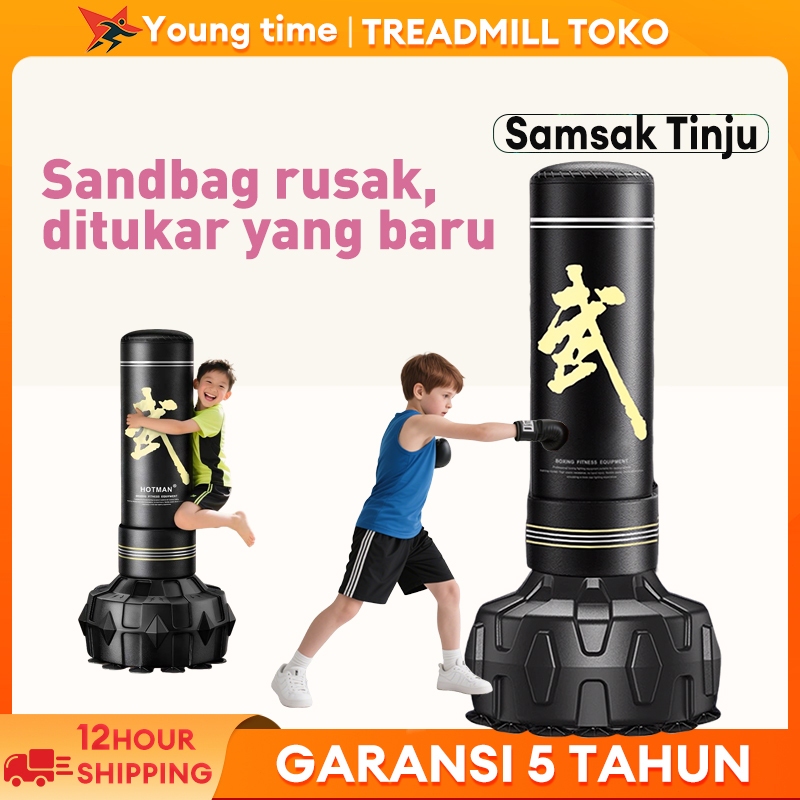 Samsak Tinju Bela Diri Vertical Punching Bag Berdiri Freestanding Punching Bag Boxing Muay Thai Red Black 170CM