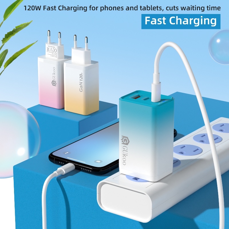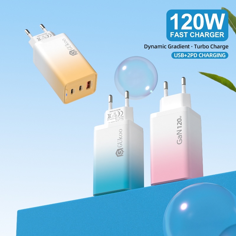 [Star]charger gukoo 120w super cepat triple port - isi 3 hp sekaligus type c + usb - warna pastel cantik