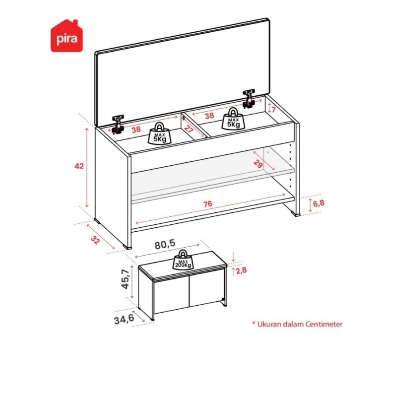 PIRA PINO SR80 PF - Rak Sepatu Susun Tertutup + Kursi Duduk Stylish