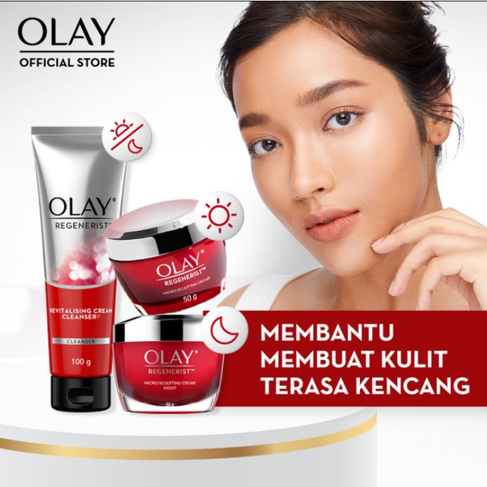 Olay Regenerist Set Niacinamide Pelembab Wajah Pagi & Malam 50g + Cleanser Perawatan Antiaging Skincare