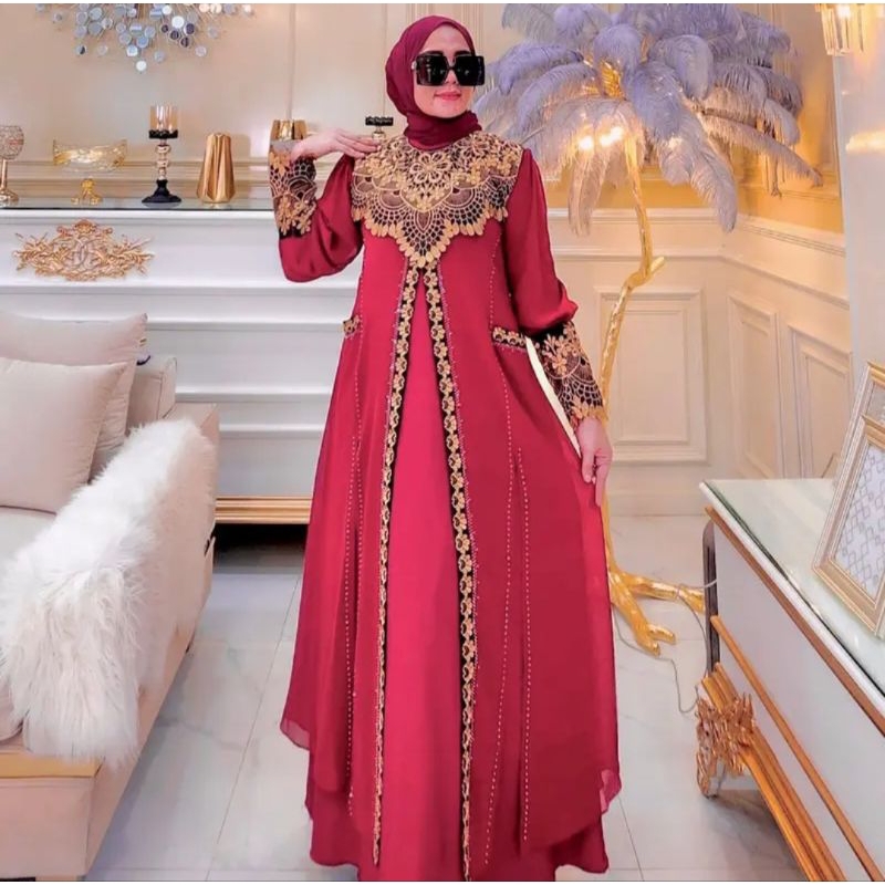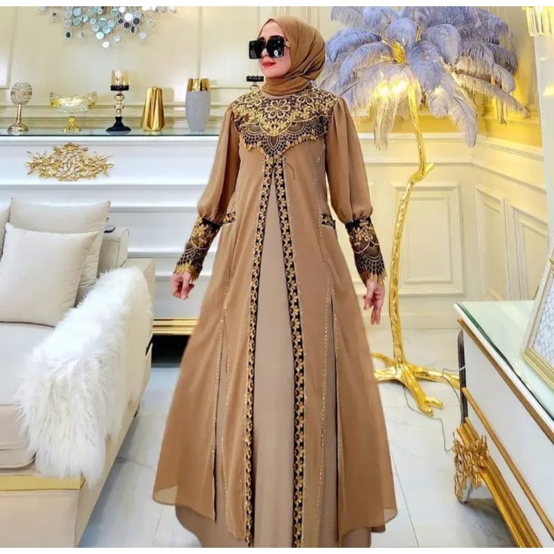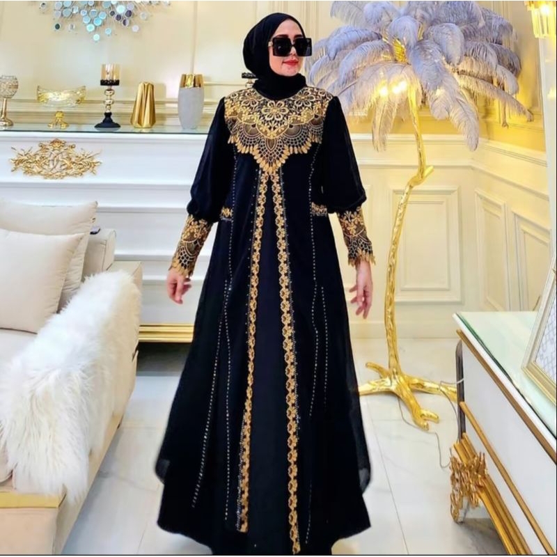 DIRA ABAYA RAMADHAN BORDIR CERUTY GAMIS MEWAH KEKINIAN SAKU CANTIK wet