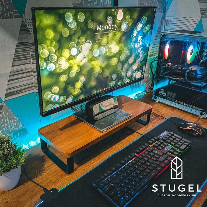 Stand Laptop / Stand Monitor / Stand Imac Kaki Besi Jati Natural - Jati Natural